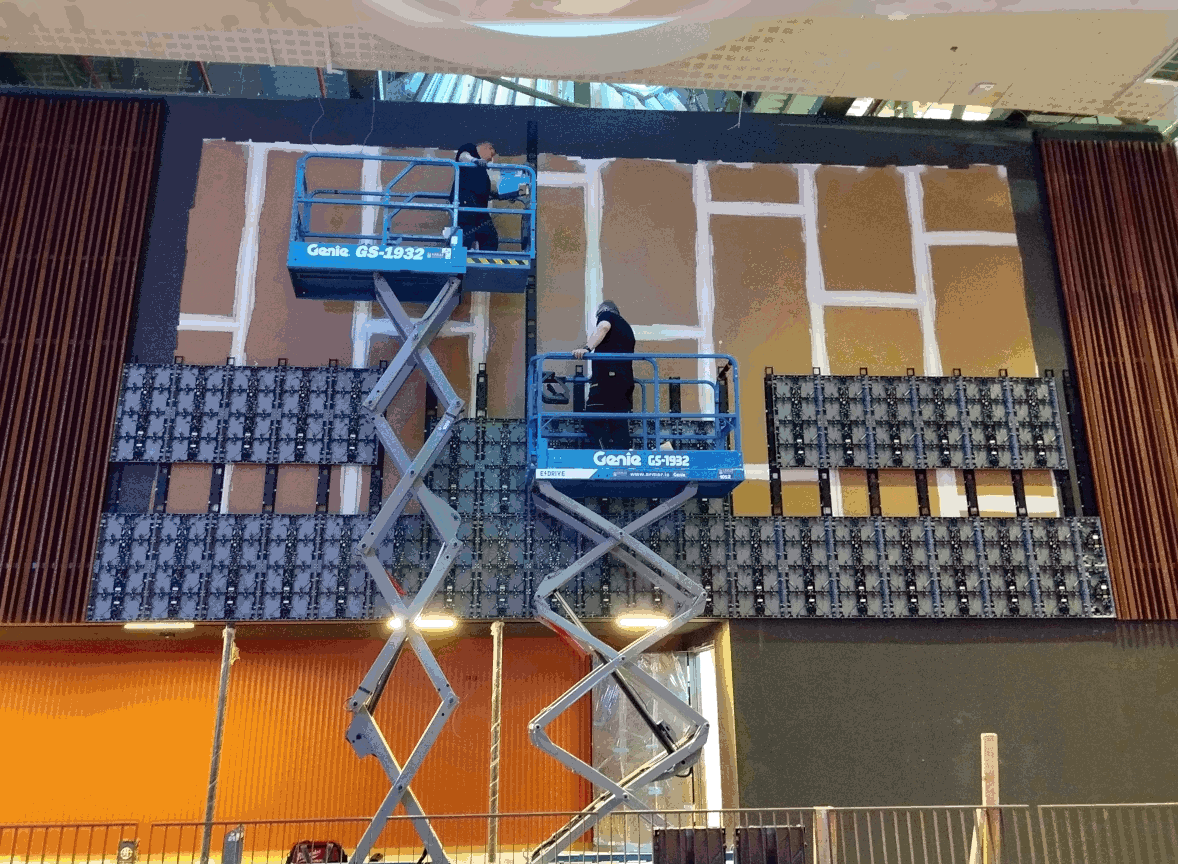 Samhliða stækkun Smárabíós þá settum við upp risastóran LED skjá fyrir Heima. Skjárinn er frá Unilumin, af gerðinni Uslim III og með 3,9mm punktaupplausn. Heildarstærðin er hvorki meira né minna en rúmir 53 fermetrar. Líklega einn stærsti innanhússkjár landsins.
